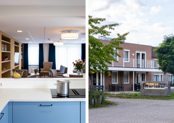 Aan het einde van de zomer is het project Mariahof in Reusel opgeleverd. Dit verpleeghuis uit de jaren 80 heeft een flinke transformatie ondergaan om het een thuis te maken voor de 30 nieuwe bewoners met dementie. Oostwest maakte het bouwkundig ontwerp en het interieurontwerp, met aandacht voor de stedelijke context, de inpassing in het bestaande gebouw en de nieuwe doelgroep. Het resultaat is een fris nieuw gezicht voor Mariahof en een thuis voor haar bewoners, dat weer aansluit op de wensen van deze tijd.