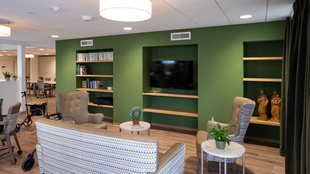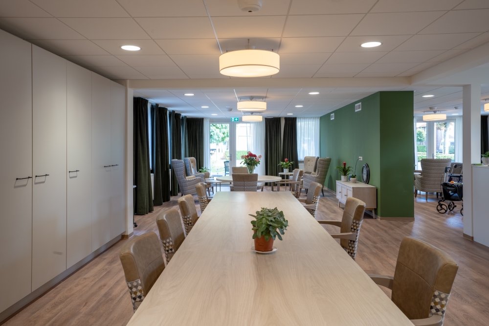 Aan het einde van de zomer is het project Mariahof in Reusel opgeleverd. Dit verpleeghuis uit de jaren 80 heeft een flinke transformatie ondergaan om het een thuis te maken voor de 30 nieuwe bewoners met dementie. Oostwest maakte het bouwkundig ontwerp en het interieurontwerp, met aandacht voor de stedelijke context, de inpassing in het bestaande gebouw en de nieuwe doelgroep. Het resultaat is een fris nieuw gezicht voor Mariahof en een thuis voor haar bewoners, dat weer aansluit op de wensen van deze tijd.