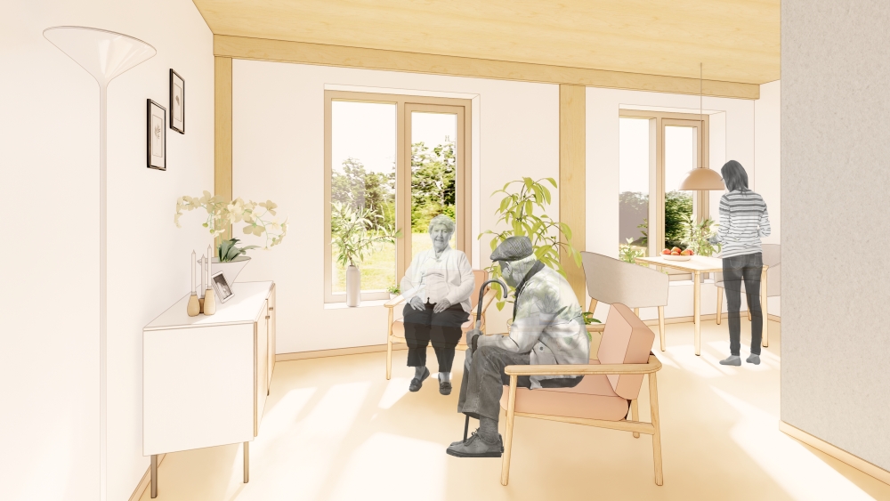 Gebouwen van hout zijn bewezen gezonder, maar tot voor kort was houtbouw voor zorgprojecten meestal financieel niet haalbaar – terwijl juist mensen met een zware zorgvraag een gezonde omgeving zo hard nodig hebben. Daarom ontwikkelde Oostwest samen met houtbouwer Finch Buildings een woon-zorgconcept, volledig opgebouwd uit hoogwaardige houten modules, en te realiseren binnen een regulier zorgbudget. Binnen het circulaire bouwsysteem van Finch Buildings bedachten we samen een ‘legodoos’ van studio-appartementen met badkamer, eetkamers, keukens, ontmoetingsruimtes en facilitaire functies, die op allerlei manieren zijn samen te stellen tot een zorggebouw op maat. Zowel Finch als Oostwest geloven dat houtbouw niet iets voor de happy few moet zijn: met dit concept brengen we houtbouw binnen bereik van de bewoners die het meest baat hebben bij een gezonde, natuurlijke omgeving. Lees er meer over in onze digitale publicatie.