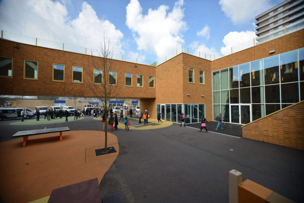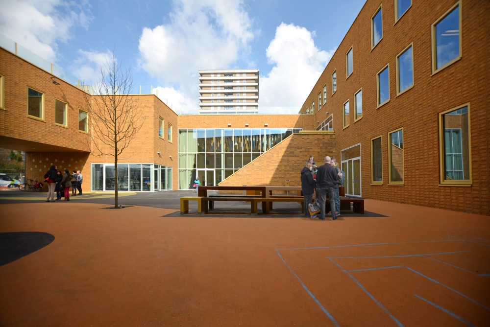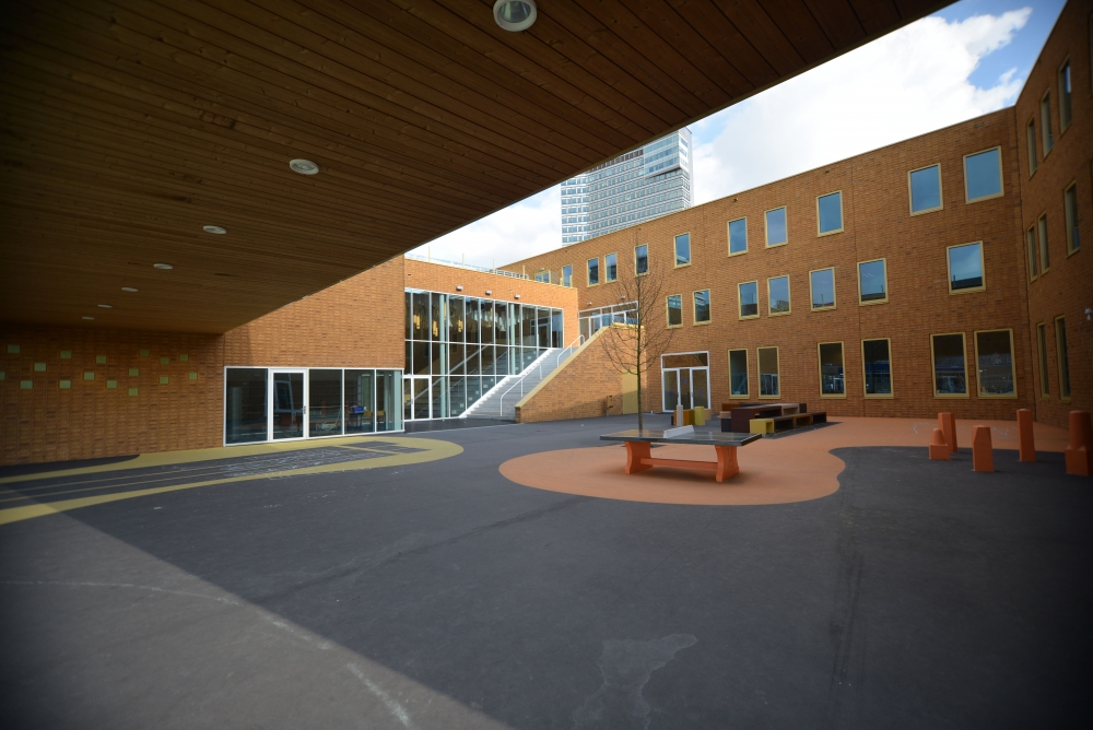 De opzet van de school wordt gekenmerkt door de heldere en compacte hoofdvorm waarin drie onderwijsstromen een eigen entree en eigen onderwijsruimten tot hun beschikking hebben, maar intern verbonden worden en een centrale multifunctionele ontmoetingsruimte met elkaar delen. De architectuur en materialisatie wordt gekenmerkt door een harde buitenkant die de kinderen afschermt van de drukke stad en een zachte binnenkant die de kinderen een veilige en beschutte leerplek biedt.